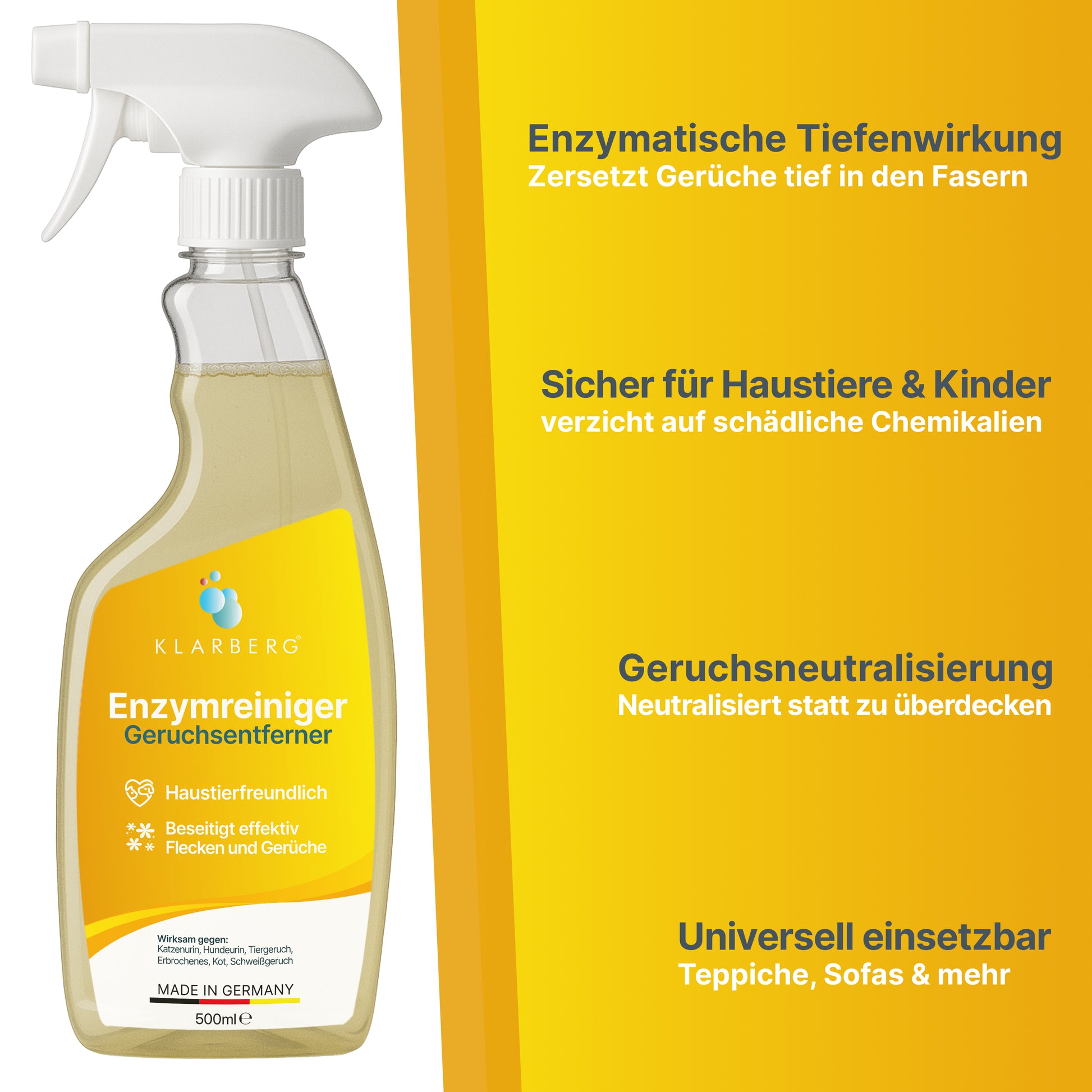 KLARBERG® Enzymreiniger 500 ml - Hundeurin Katzenurin Geruchsentferner