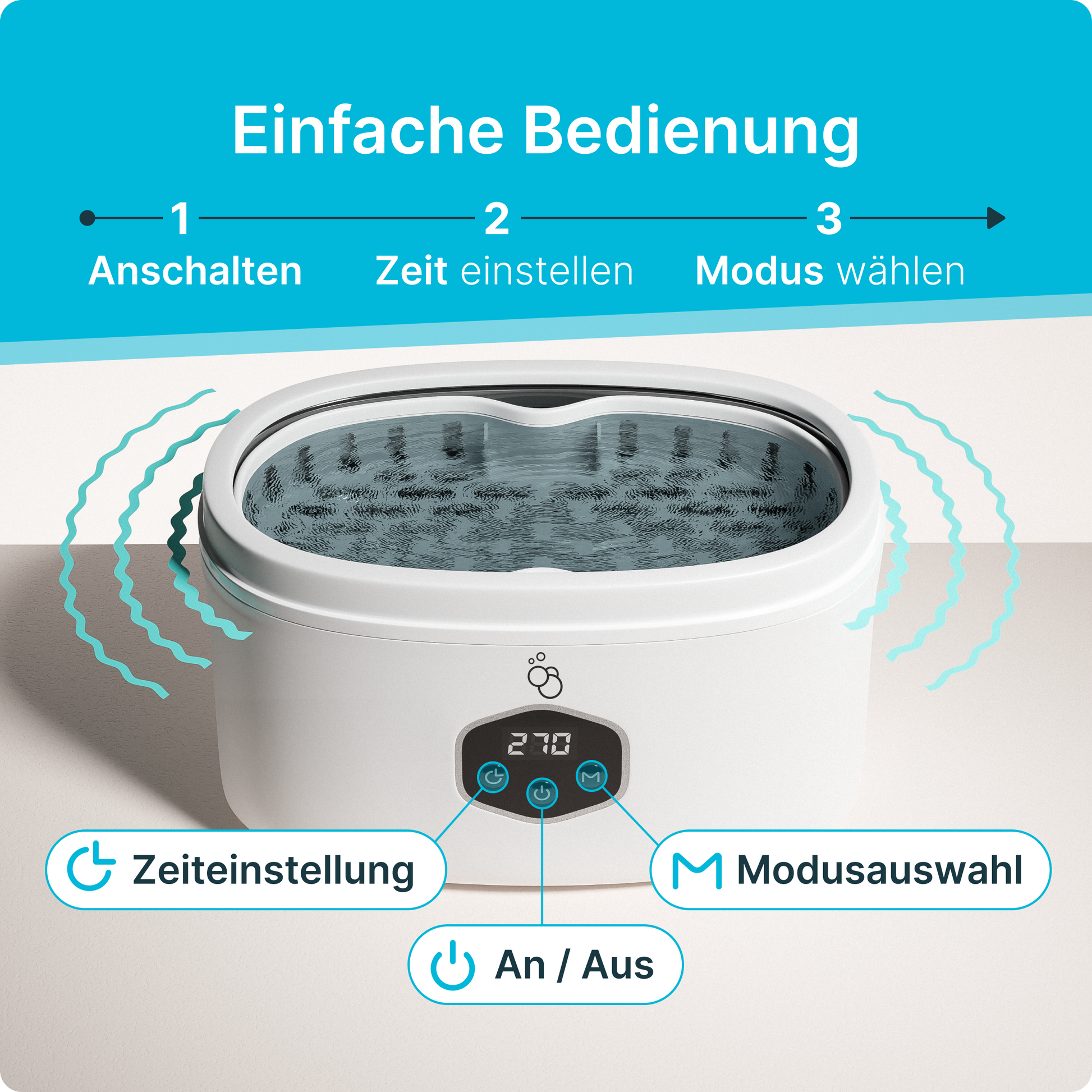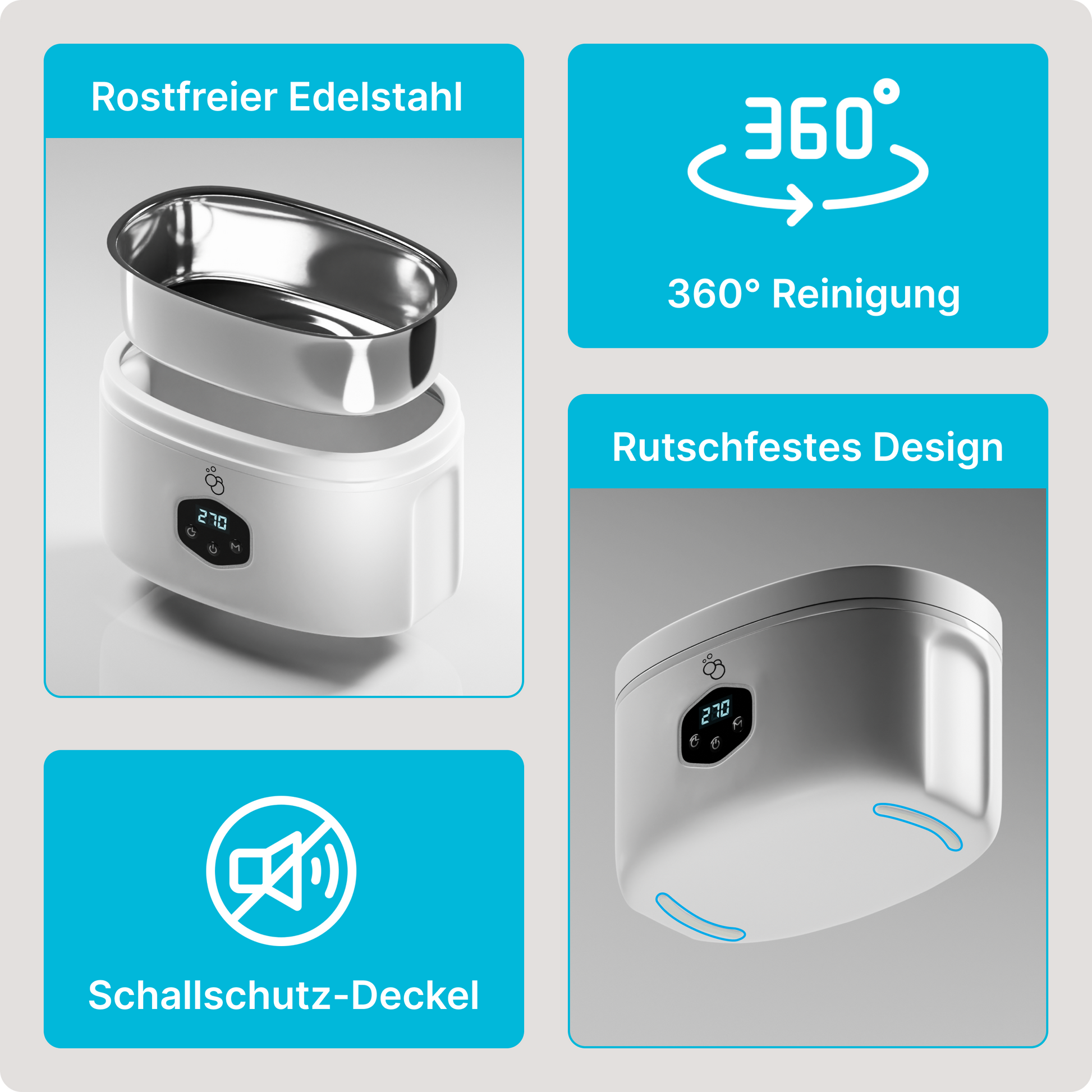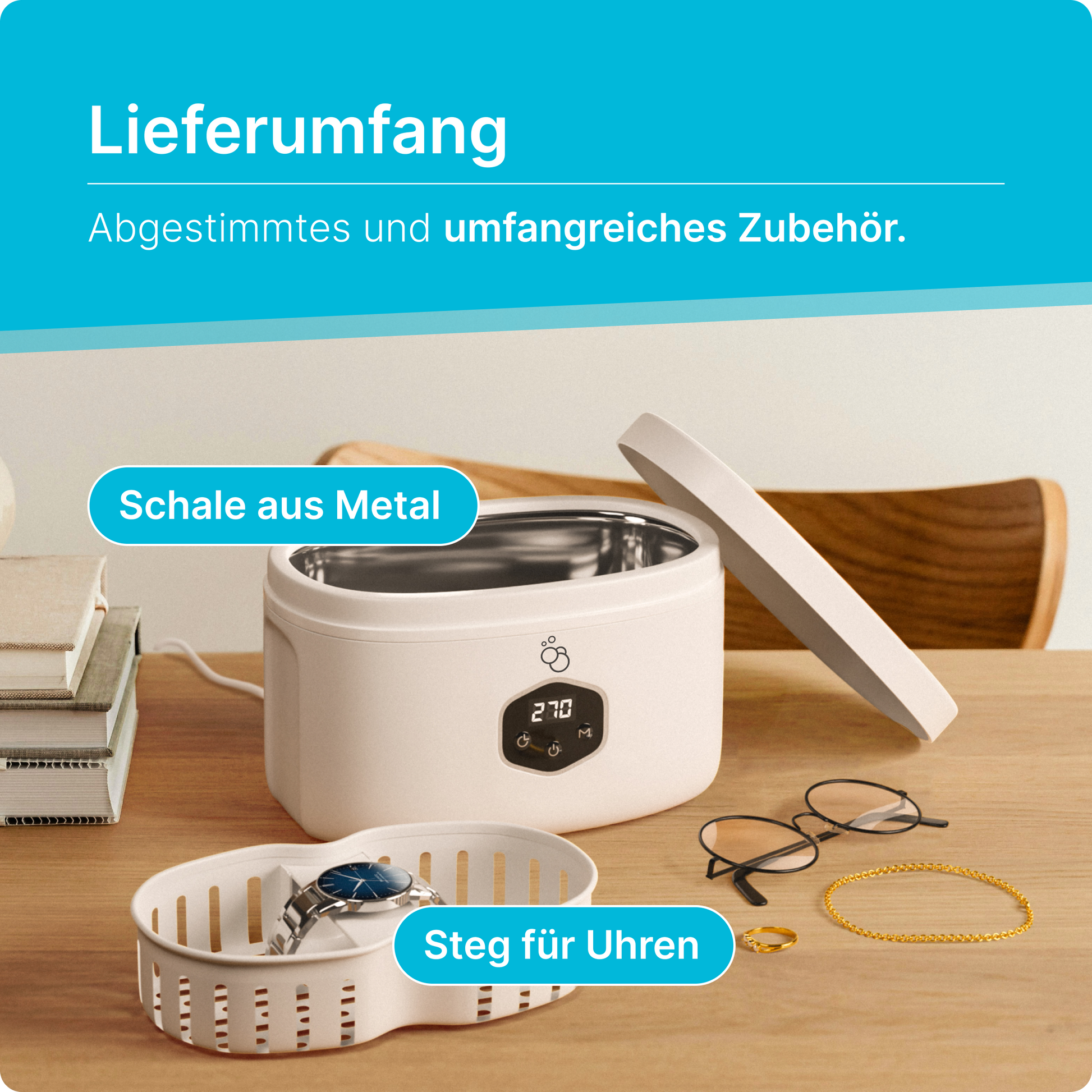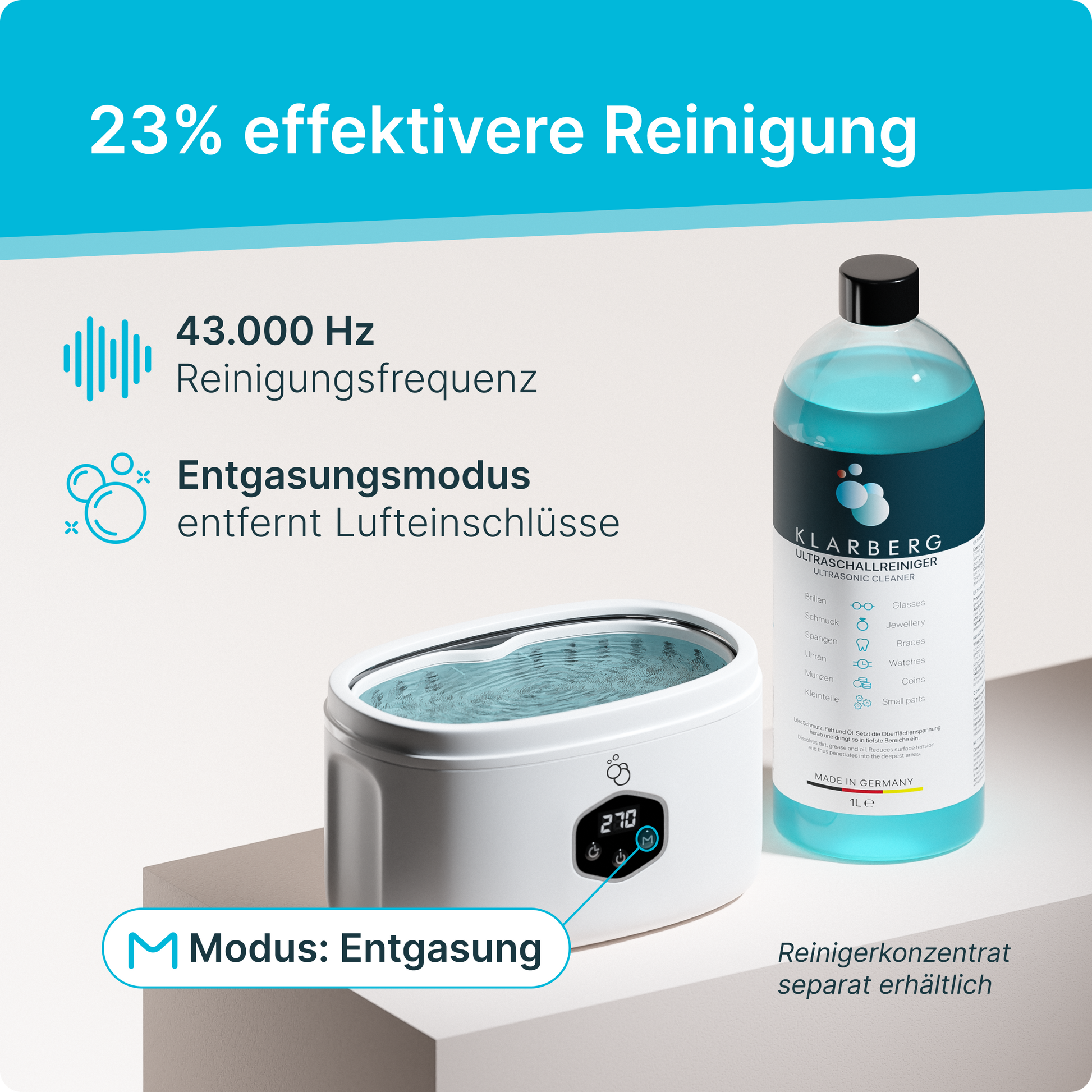 - HOCHFREQUENZ-REINIGUNG - Unser Ultraschallreinigungsgerät arbeitet mit 43kHz, um eine leistungsstarke, sanfte 360° Tiefenreinigung zu ermöglichen - das sorgt für saubere Brillen, Schmuck, Zahnschienen uvm.